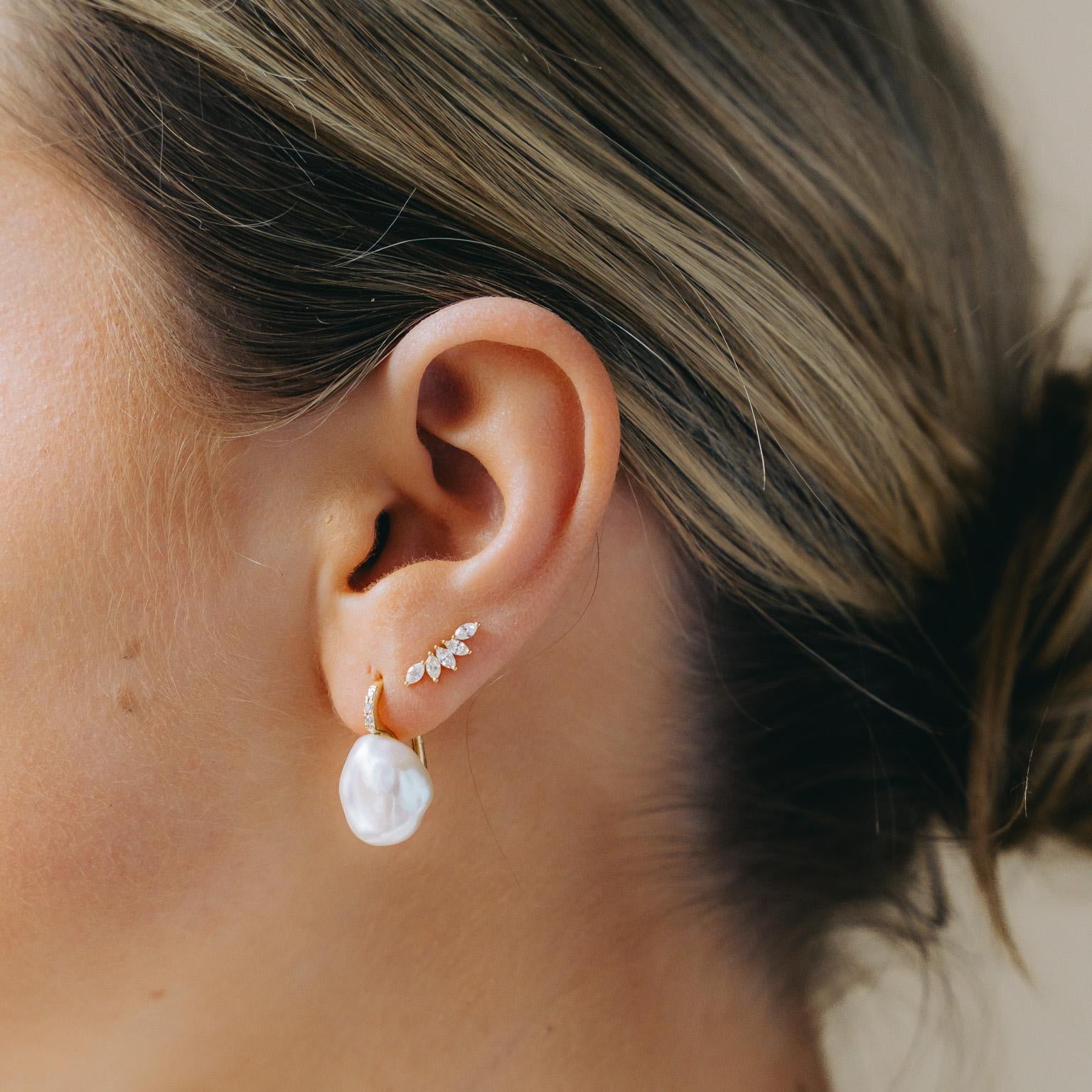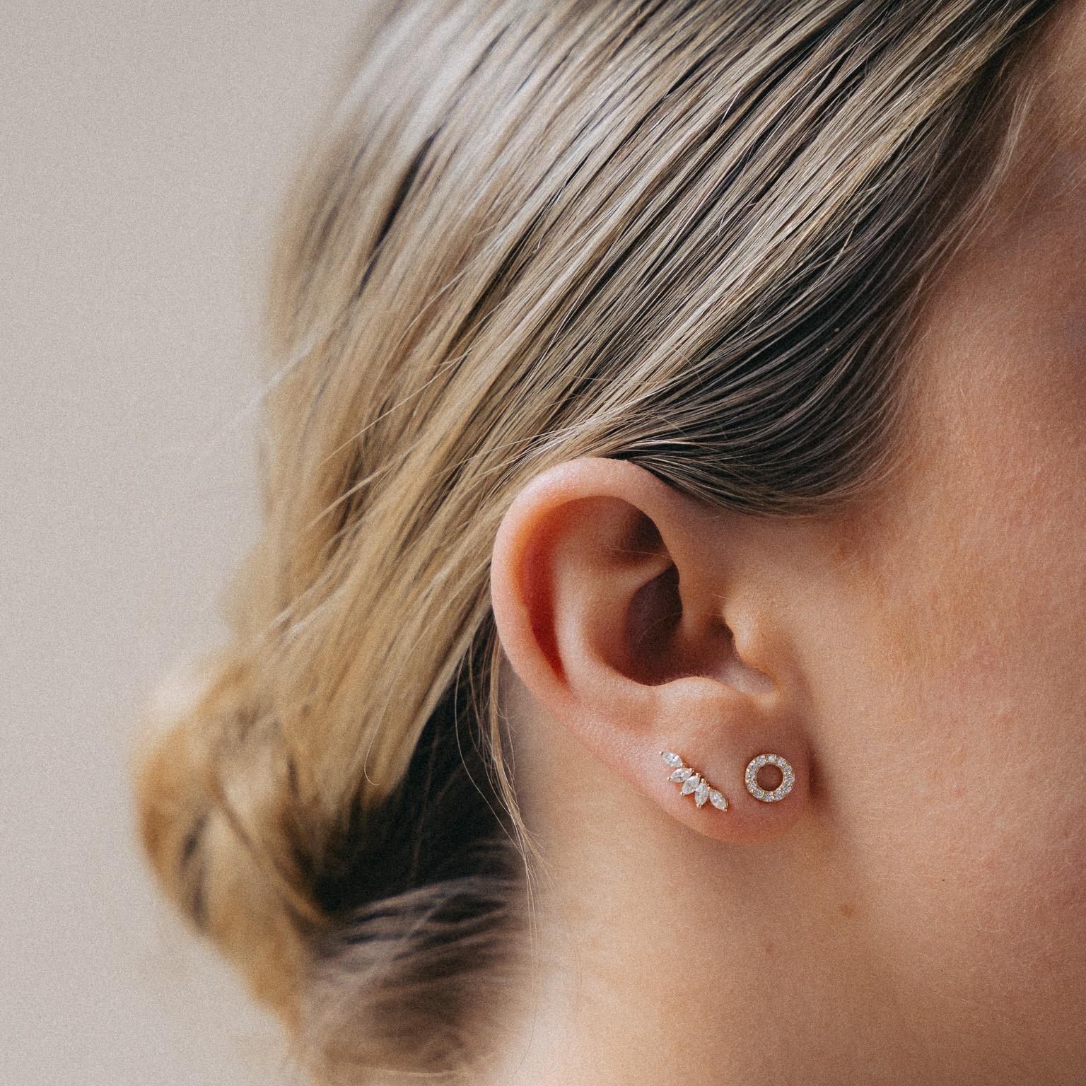 Our collection of 18kt gold, 9kt gold and 14kt gold filled earrings, designed in Dublin by Margaret O’Rourke and hand finished by us in our studio. These classic and easy to layer pieces are inspired by our love of clean lines and the night sky and feature stars, moons, circles, bars and squares, alongside timeless pearls, Swarovski crystals and diamonds. Choose from everyday hoops and studs to elegant oval drop and threader earrings.