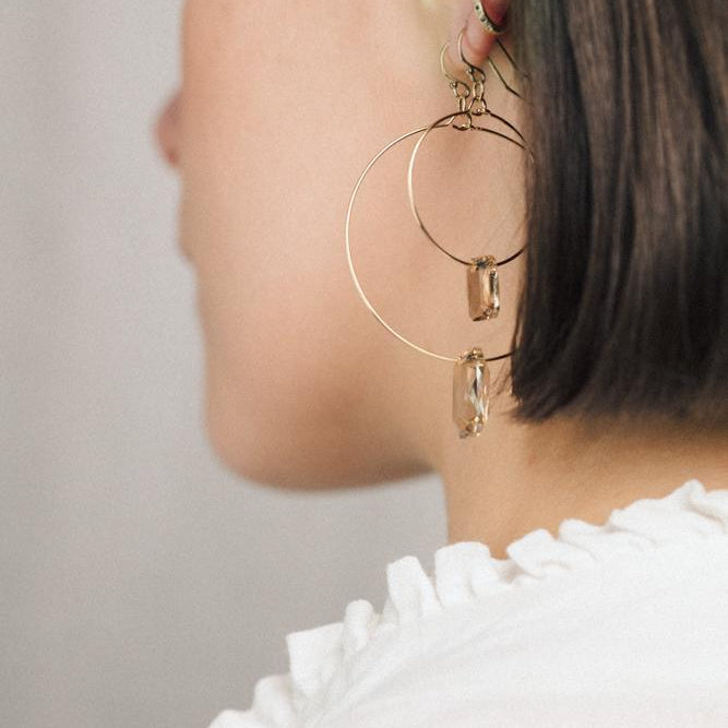 Designed by Margaret O’Rourke, our latest collection, ‘Golden Hour’ is an ode to the magic time of day just after sunrise and just before sunset, when everything in sight is flooded with warm, golden light. Asymmetric crystal in aquamarine blue represents the ocean while globe-shaped golden shadow crystal speaks to the sun as it burns bright during the summer. Pearls (both keshi and freshwater) appear as little gifts from the ocean and softer shapes are juxtaposed with geometric cube and emerald-cut crystal along with contemporary gold-filled tubular bars.