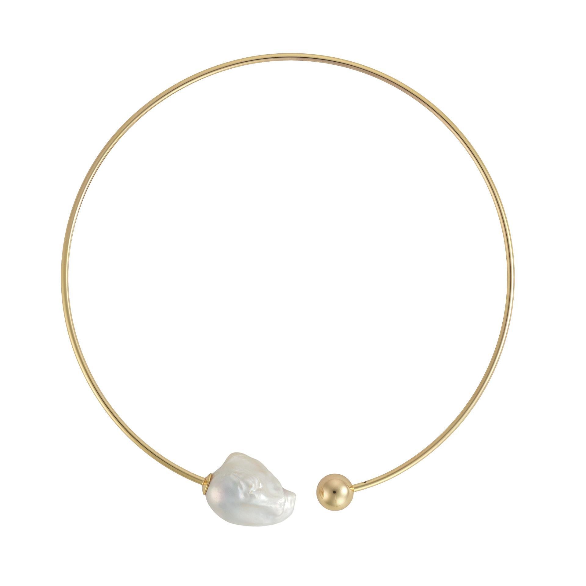 Gold Plated Sterling Silver Flexi Baroque Pearl Necklace