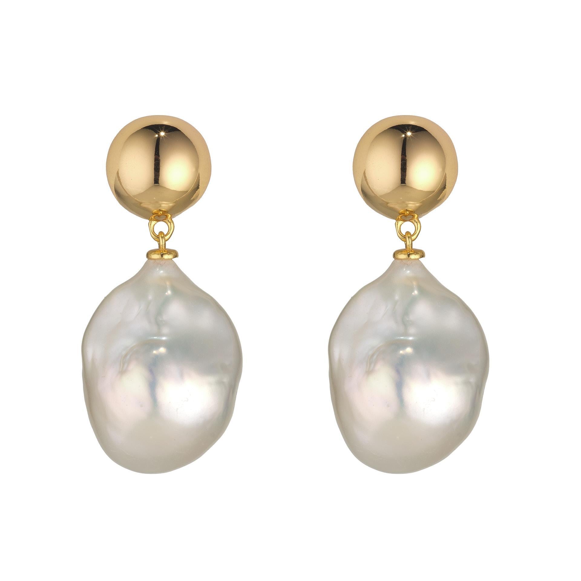 Gold Plated Sterling Silver Stud & Baroque Pearl Drop Earrings