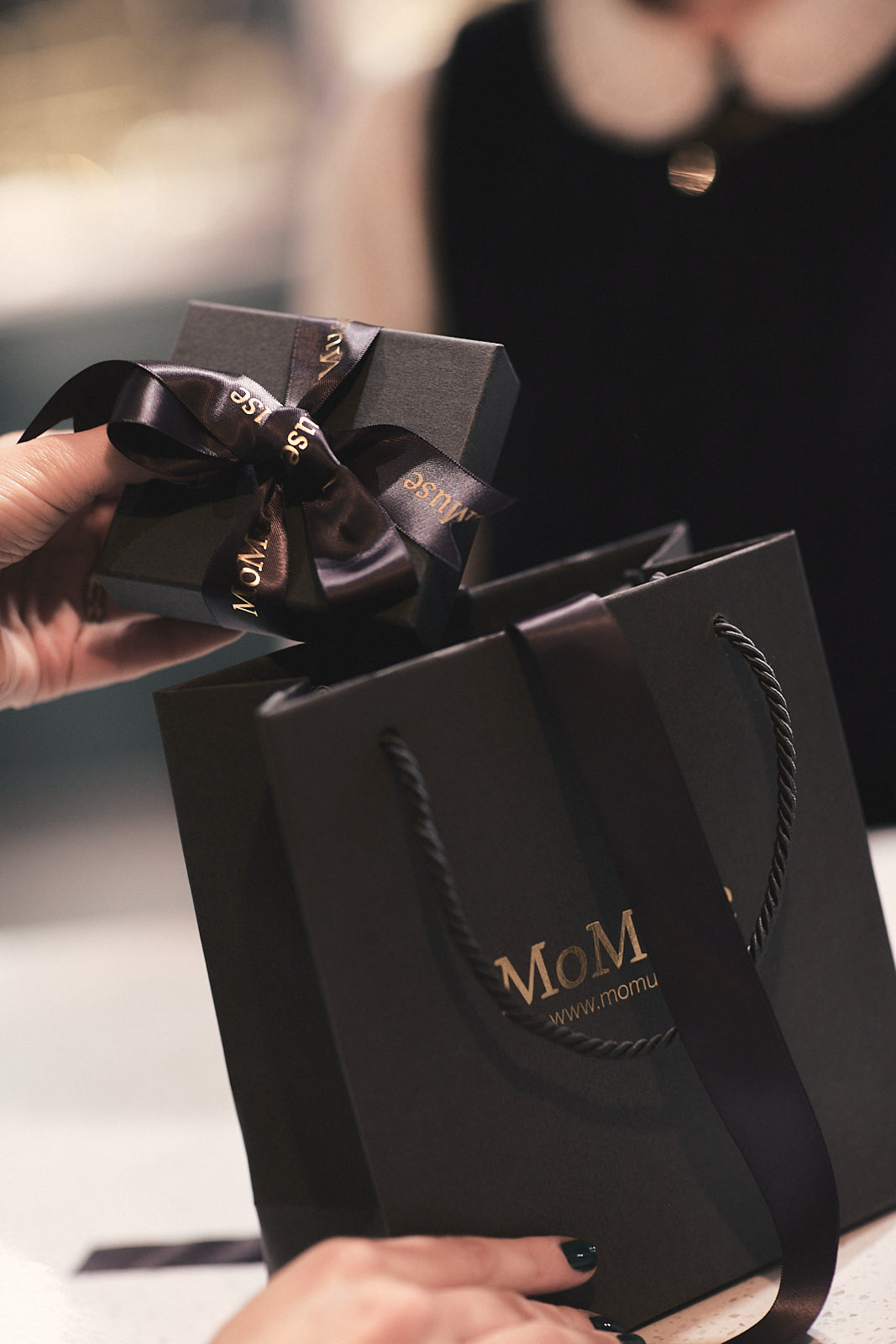When placing an order online at MoMuse, you will also be given the option to choose whether or not you would like your order to arrive with minimal packaging or with a gift bag.