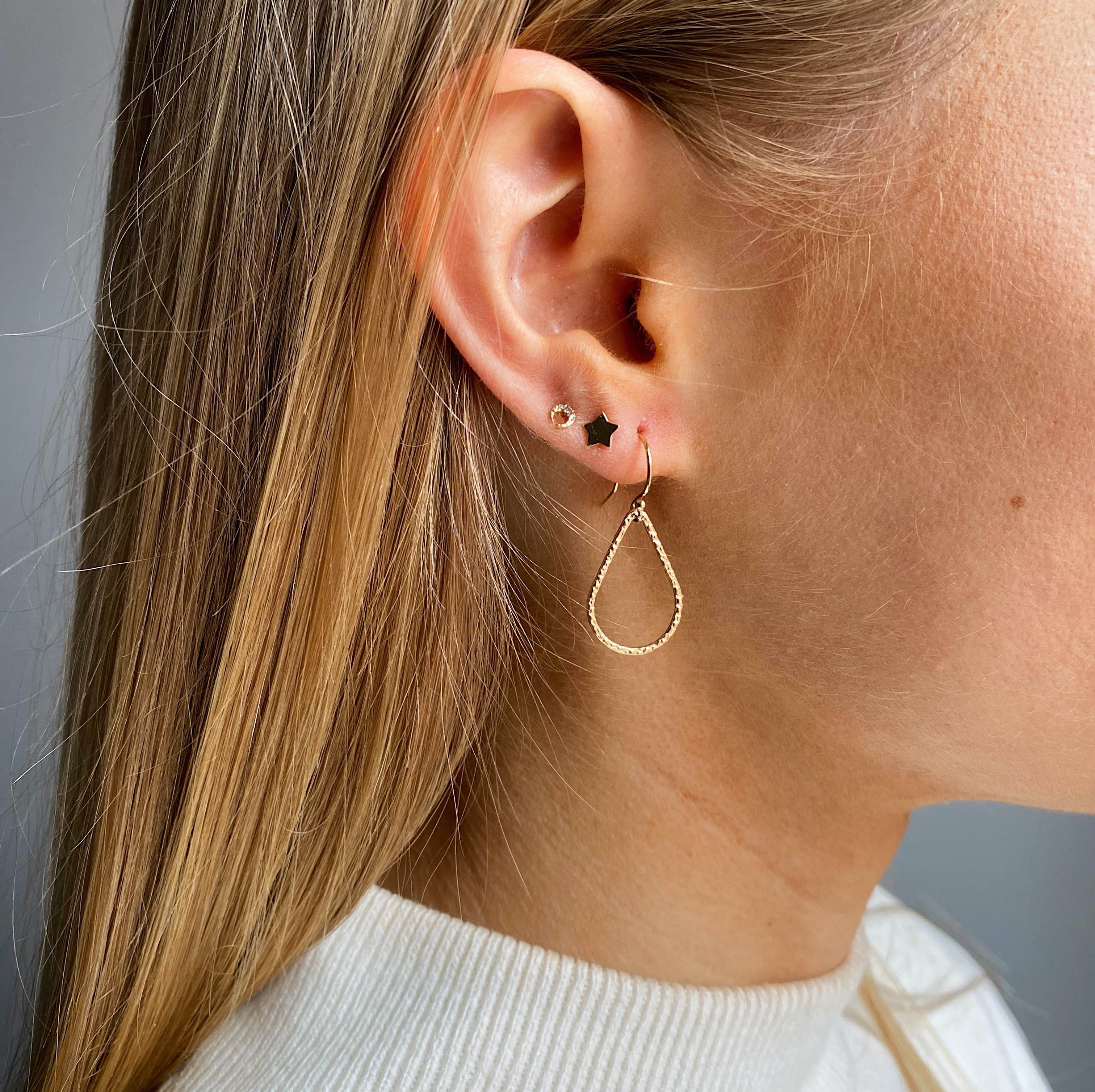 14kt gold filled textured tear drop earrings from our fine jewellery collection.