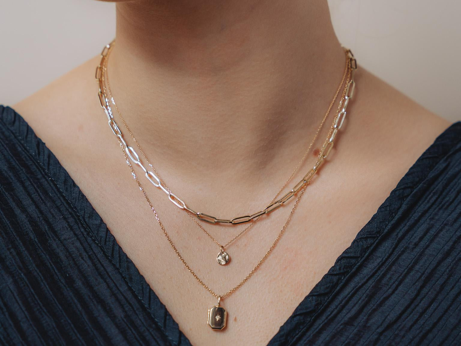 Elevate your everyday style with this chic 9kt Hammered Gold Disc Necklace. Crafted from solid 9kt gold, the pendant features a hand-hammered finish that catches the light beautifully, creating a subtle shimmer. The delicate disc hangs gracefully from a fine gold chain, offering a minimalist yet eye-catching piece you can wear alone or layer effortlessly.