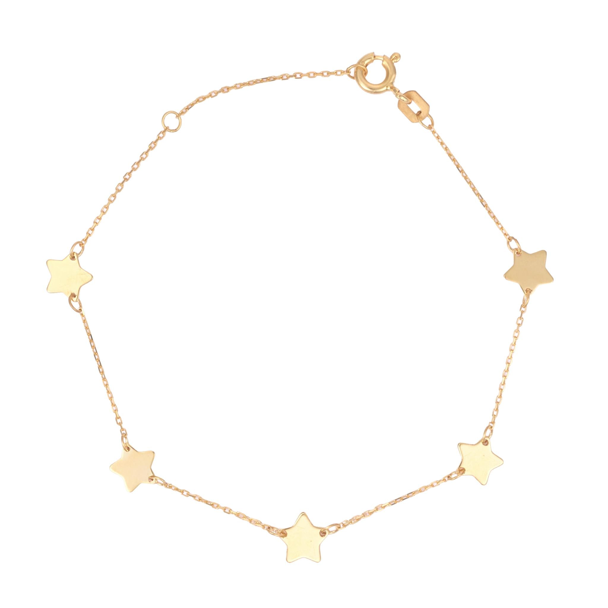 Add a touch of celestial elegance to your jewellery collection with this 9kt Gold Five Star Charm Chain Bracelet. Crafted from 9kt gold, the bracelet features five delicate star charms that dance lightly along a fine gold chain with radiant elegance.