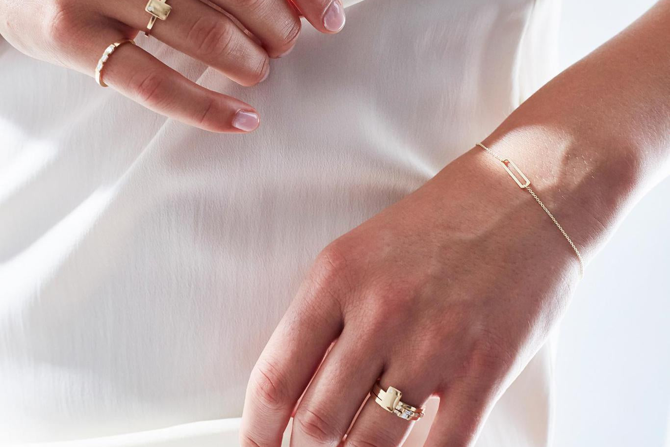 This bracelet is part of The Synergy Collection - a collaboration between founder and designer Margaret O'Rourke and stylist, Ingrid Hoey. A fine jewellery collection to celebrate friendship, the collection includes nine pieces composed of 9kt gold,. Hero pieces include drop earrings, diamond initials, layering necklaces, , a signet ring and a modern infinity bracelet.