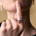 Radiant and serene, this Aquamarine & Diamond Ring captures the tranquil beauty of clear blue water and sunlight. A brilliant aquamarine solitaire sits at the centre, its cool, luminous hue perfectly balanced by the warmth of 18kt yellow gold. Along the band, delicate white diamonds are set with subtle precision, adding a refined sparkle that enhances the ring’s graceful simplicity.