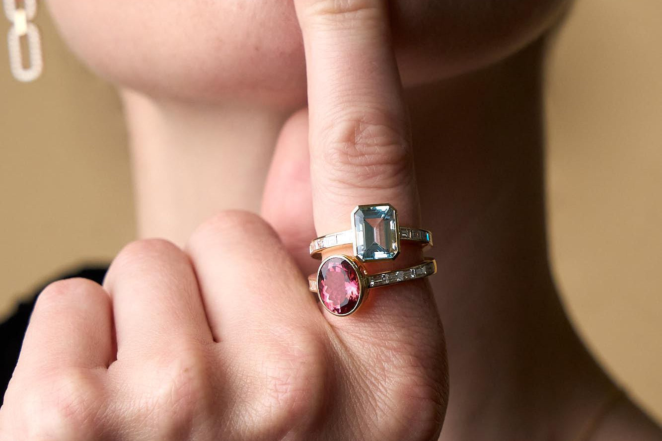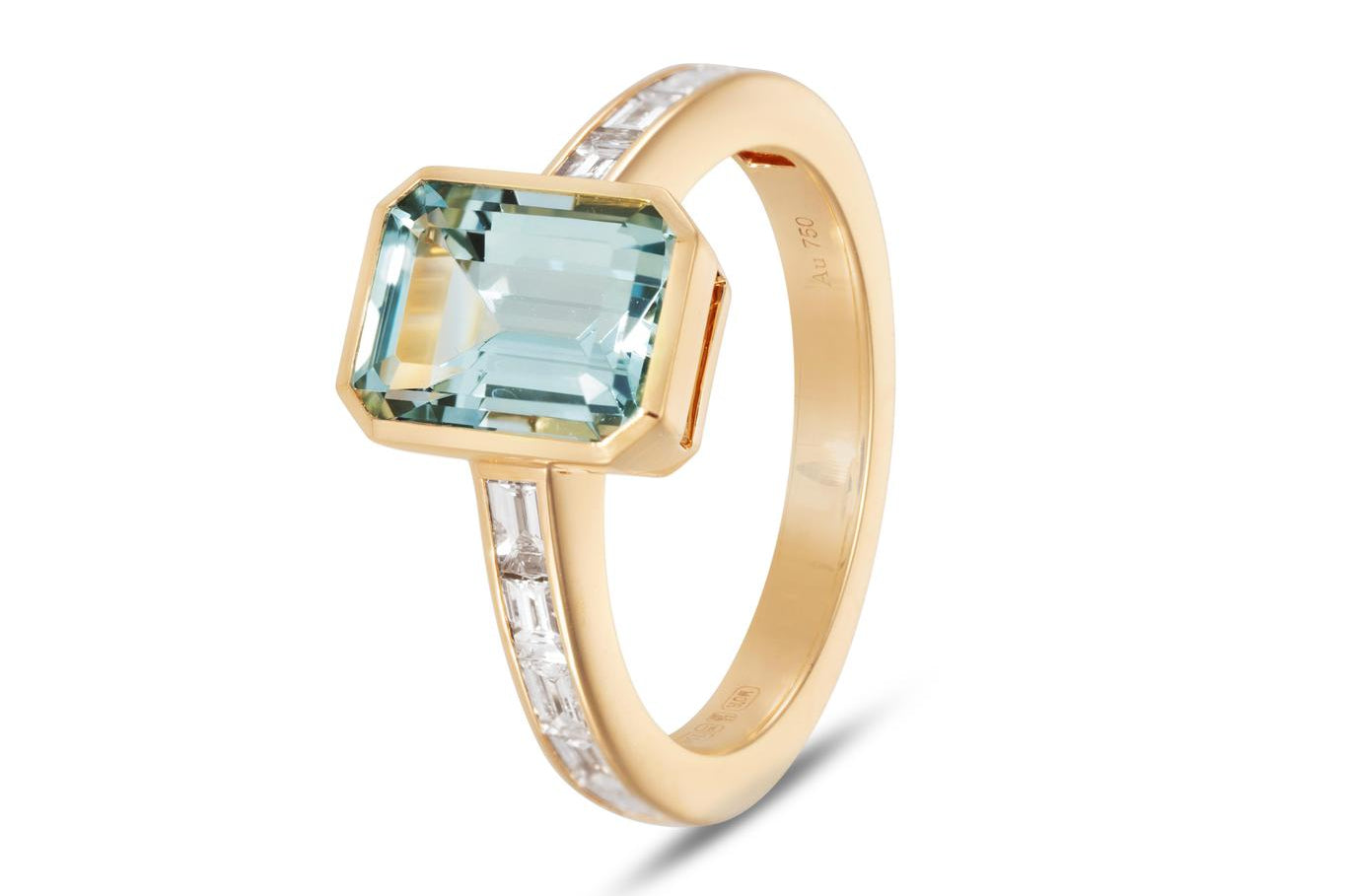 Aquamarine and Diamond Ring in 18kt Gold - Bands of Colour Collection
