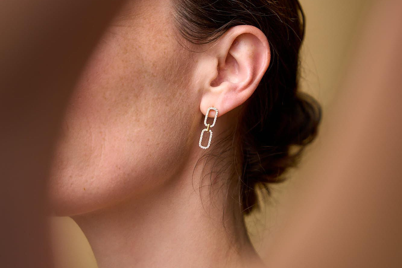Elegantly modern with a timeless silhouette, the Diamond Double Drop Earrings are a radiant new addition to the Synergy Collection. Crafted in 18kt white gold, each earring features two delicate drops set with natural, white diamonds, catching the light with effortless brilliance.