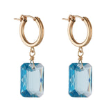 Gold Filled 16mm Emerald Cut Aquamarine Crystal Clip Hoop Earrings