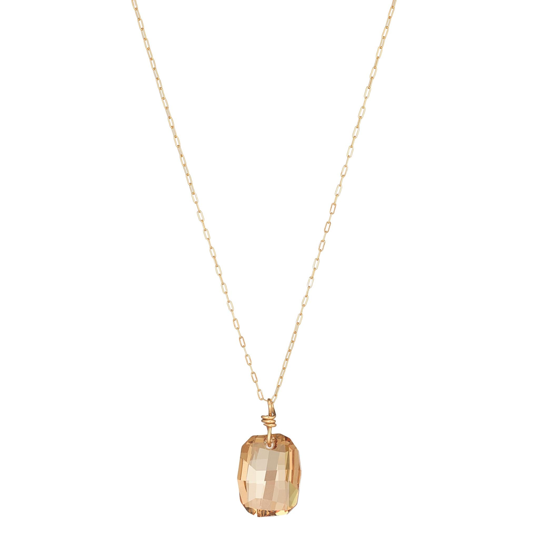 Gold Filled 19mm Golden Shadow Crystal Pendant Necklace