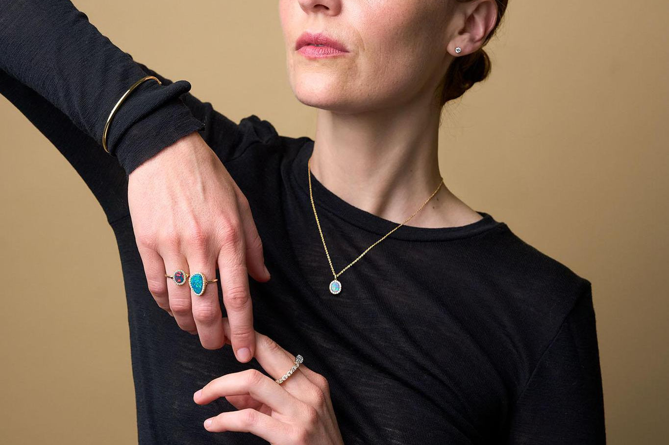 Organic, luminous, and utterly unique, this Irregular Opal & Diamond Ring from our Night Sky Collection captures the magic of the cosmos in motion. Set in 18kt yellow gold, an eye-catching opal gleams with shifting flashes of colour, its natural shape celebrated rather than refined. Brilliant white diamonds accent the stone with delicate brilliance, echoing constellations against a midnight sky.