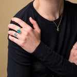 Ethereal and captivating, this Oval Opal & Diamond Ring evokes the quiet brilliance of a starlit sky. Crafted in warm 18kt yellow gold, the design centres on a luminous oval opal whose shifting colours mirror the dance of light across the night. Framing the opal, delicate white diamonds glimmer like constellations, adding depth and radiance to the piece.