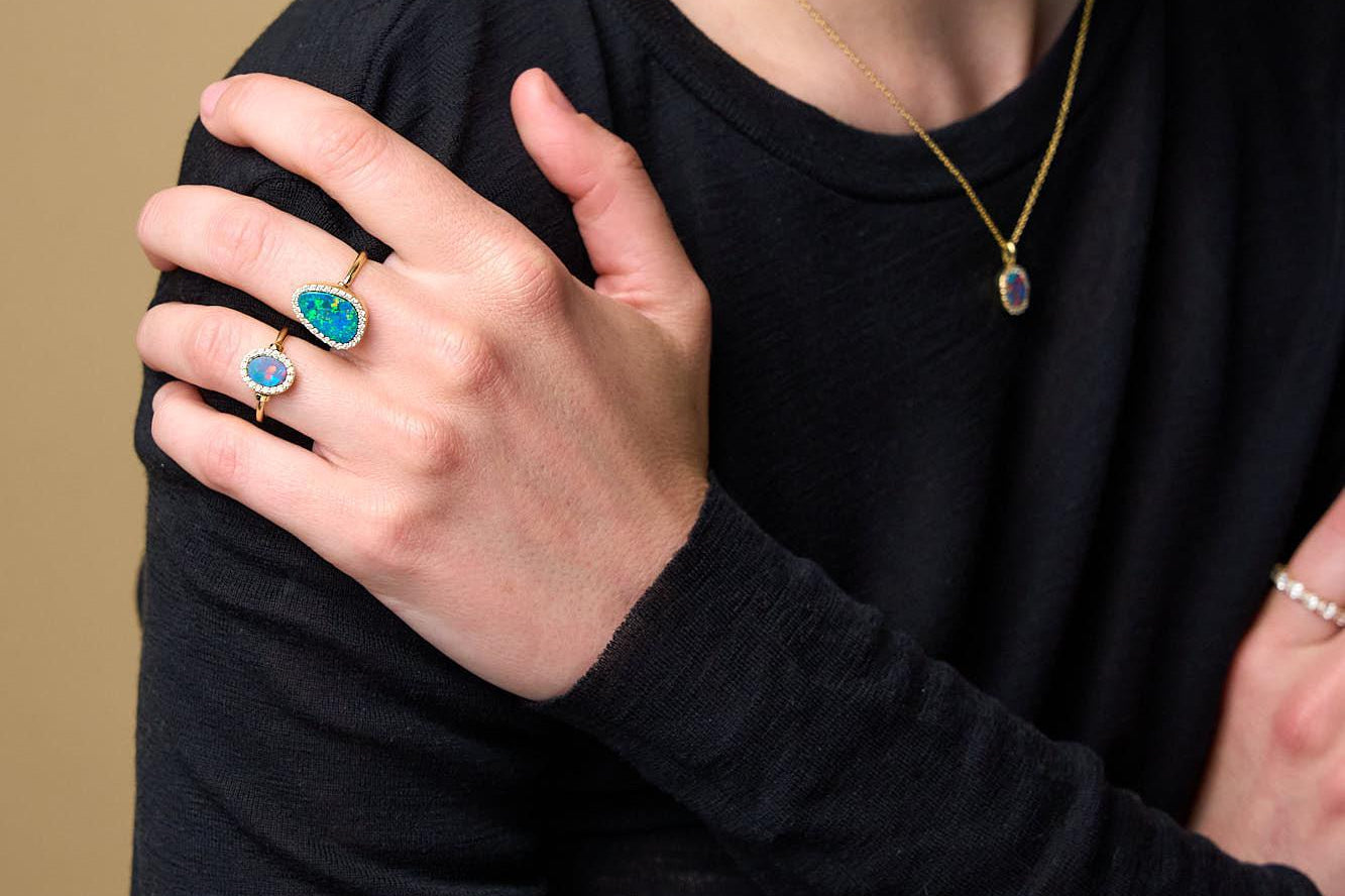 Oval Opal & Diamond Ring in 18kt Yellow Gold - 'Night Sky'