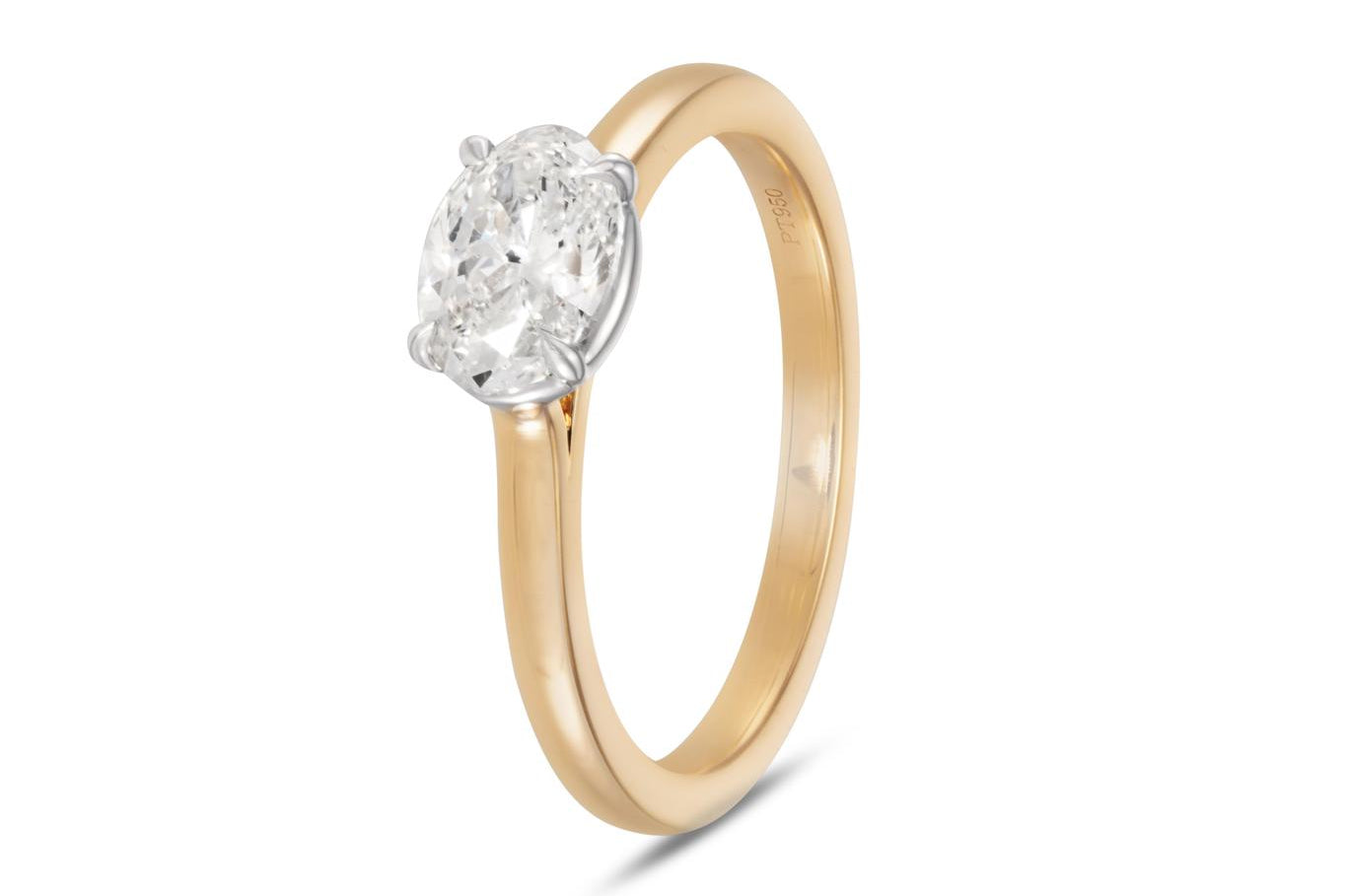 Oval Diamond 'East-to-West' Solitaire Ring in 18kt Yellow Gold - Signature Collection